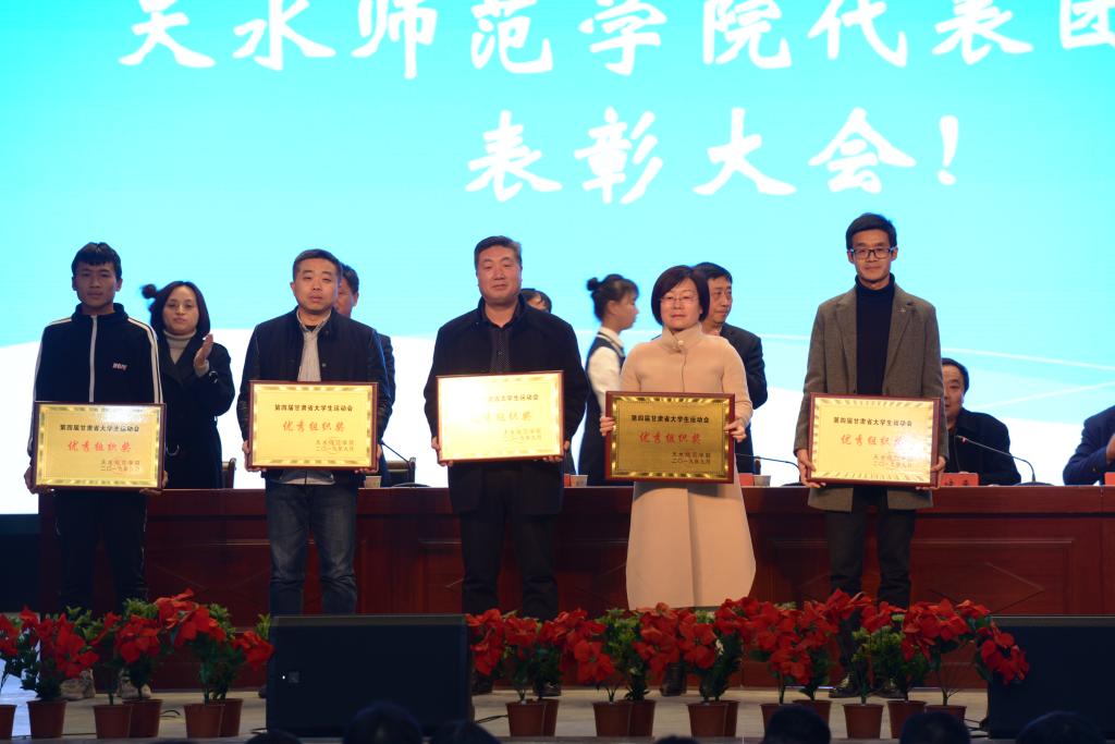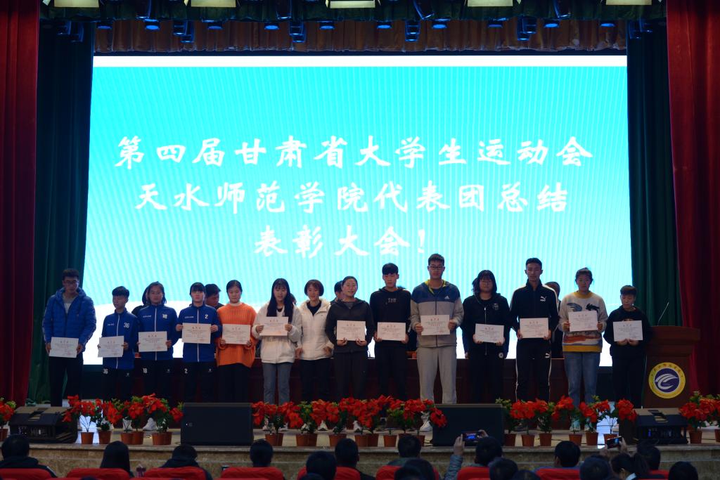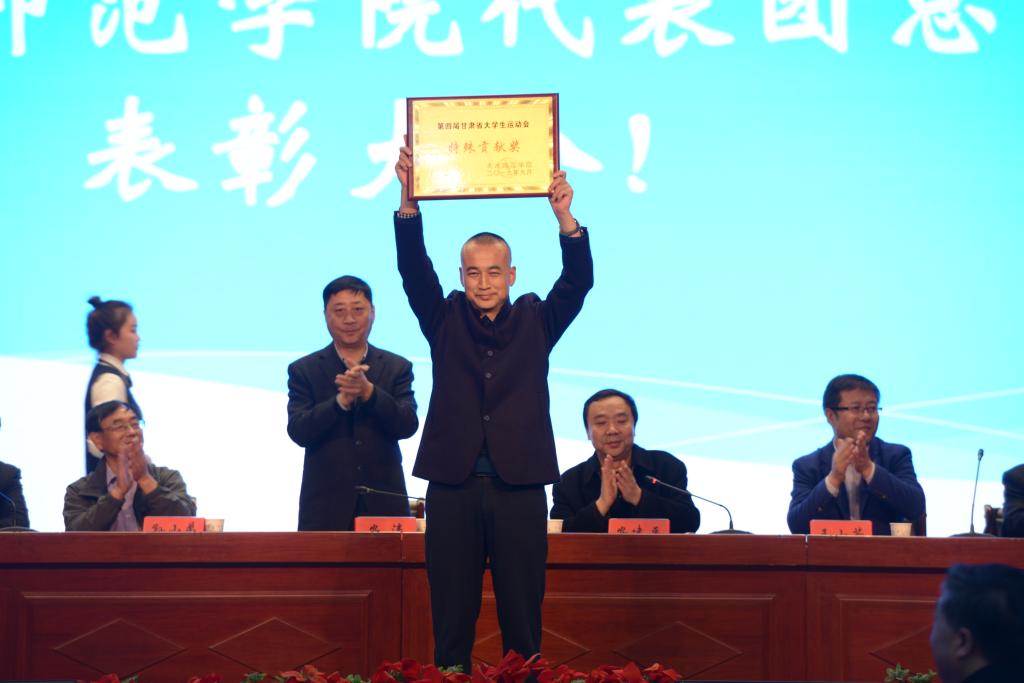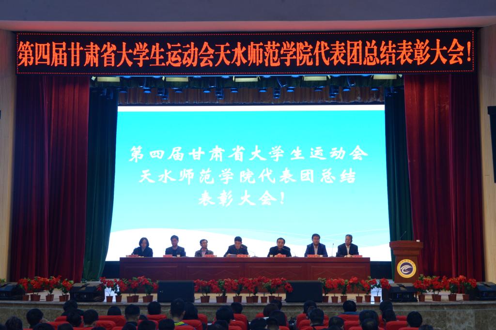 10月14日下午,第四届甘肃省大学生运动会350vip8888新葡的京集团代表团总结表彰大会在学校文化大礼堂召开。学校党委副书记、校长安涛出席会议并为受到表彰的单位和个人进行颁奖。校工会、学生处、团委、二级学院相关负责人,350vip8888新葡的京集团全体师生和代表团全体运动员、教练员、工作人员共计800余人参加大会。大会由副校长、校体委主任安建平主持。