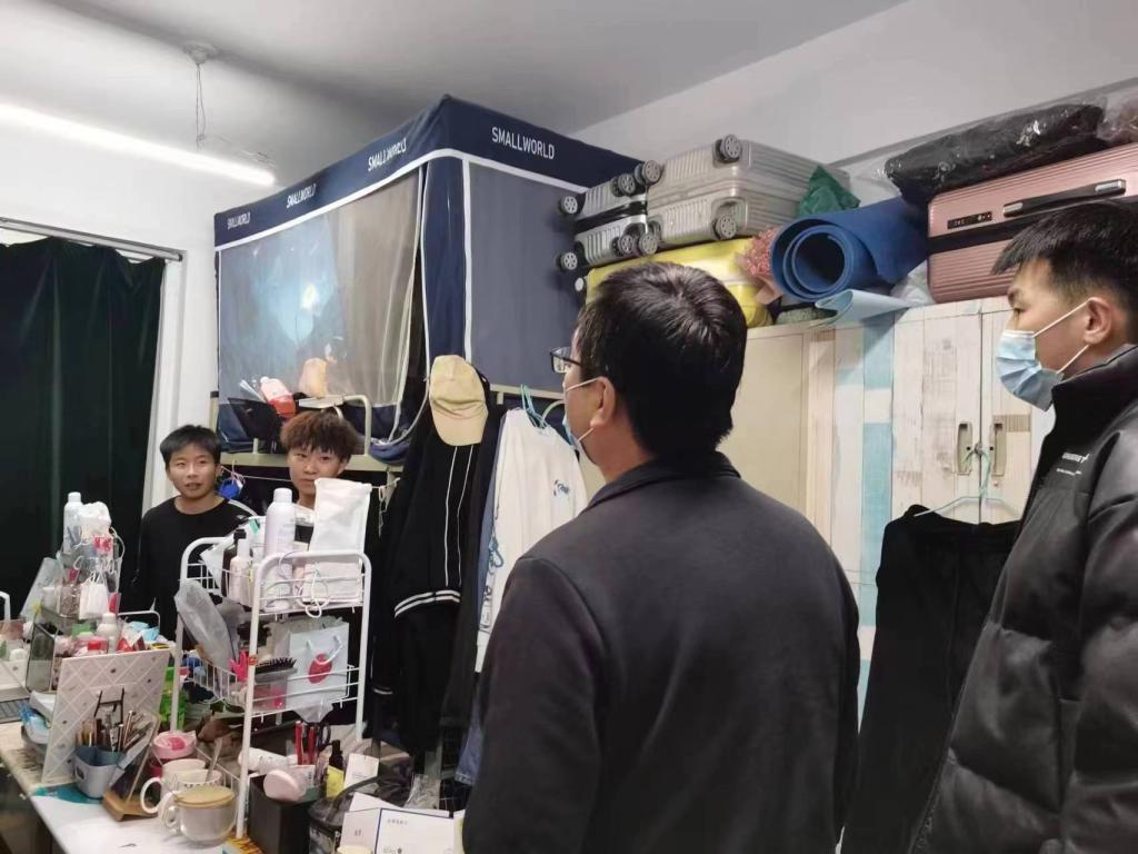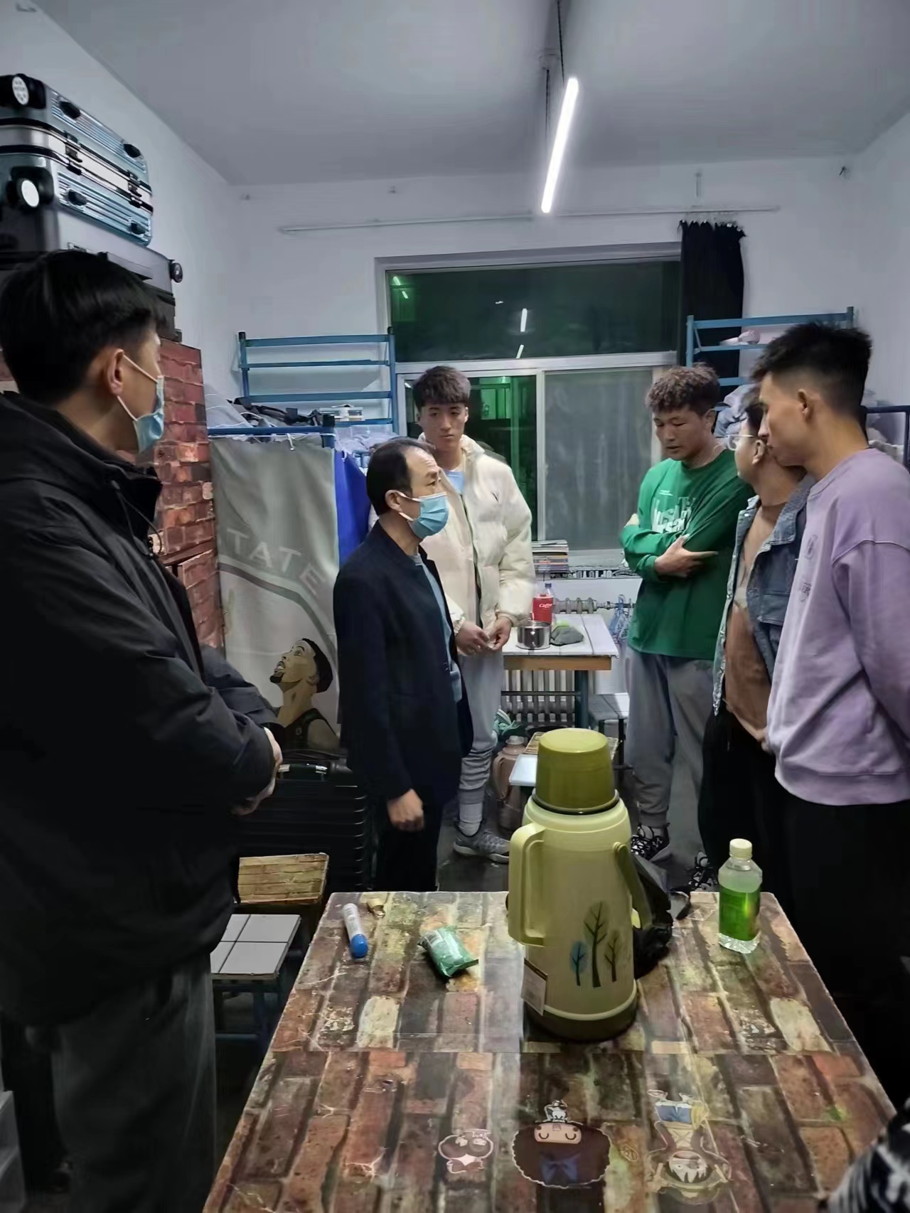 2023年2月25日晚,350vip8888新葡的京集团班子成员和辅导员深入弘毅公寓、双馨公寓看望2022级学生,为学生送去关心和问候。