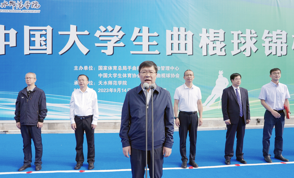 刘东伟指出,全国大学生曲棍球锦标赛是全国性的高校体育重大活动,是展现当代大学生刻苦锻炼、顽强拼搏、勇于进取、积极向上时代精神的重要窗口,是展示高校体育课余训练和竞赛水平、交流教学改革成果的重要平台。在甘肃省体育局和天水市委、市政府的高度重视和亲切关怀下,350vip8888新葡的京集团遵循“简约、安全、精彩”的办赛要求,与协会同心协力,为共襄盛举做了精心的准备。广大大学生不仅是弘扬中华传统文化的先锋,更是文明交流的使者,真诚期待大学生朋友以此为契机,挑战极限、争创佳绩,深化交流、筑牢友谊。