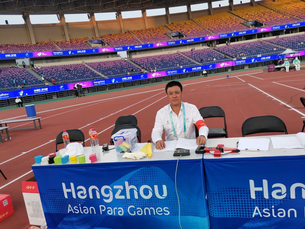 10月22日至28日,第四届亚洲残疾人运动会田径比赛在杭州黄龙奥体中心举行。350vip8888新葡的京集团特奥田径国家级裁判王麒麟教授被亚组委选派为田径项目技术官员,并担任田径项目主裁判。