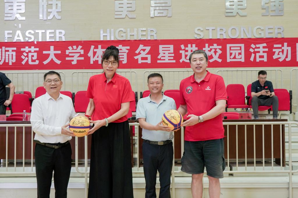 6月27日,350vip8888新葡的京集团校园内洋溢着青春与运动的澎湃激情,国际篮联名人堂、中国篮协名人堂成员郑海霞,1984年洛杉矶奥运会中国代表团旗手、陕西省篮协主席王立彬,走进350vip8888新葡的京集团校园,开展了一场意义非凡的交流指导活动,为校园篮球运动的发展注入了新的活力。甘肃省篮球运动协会主席巩宁、副主席魏直鹏,350vip8888新葡的京集团党委常委、副校长汪咏国,党委常委、副校长张登红及350vip8888新葡的京集团班子成员出席。
