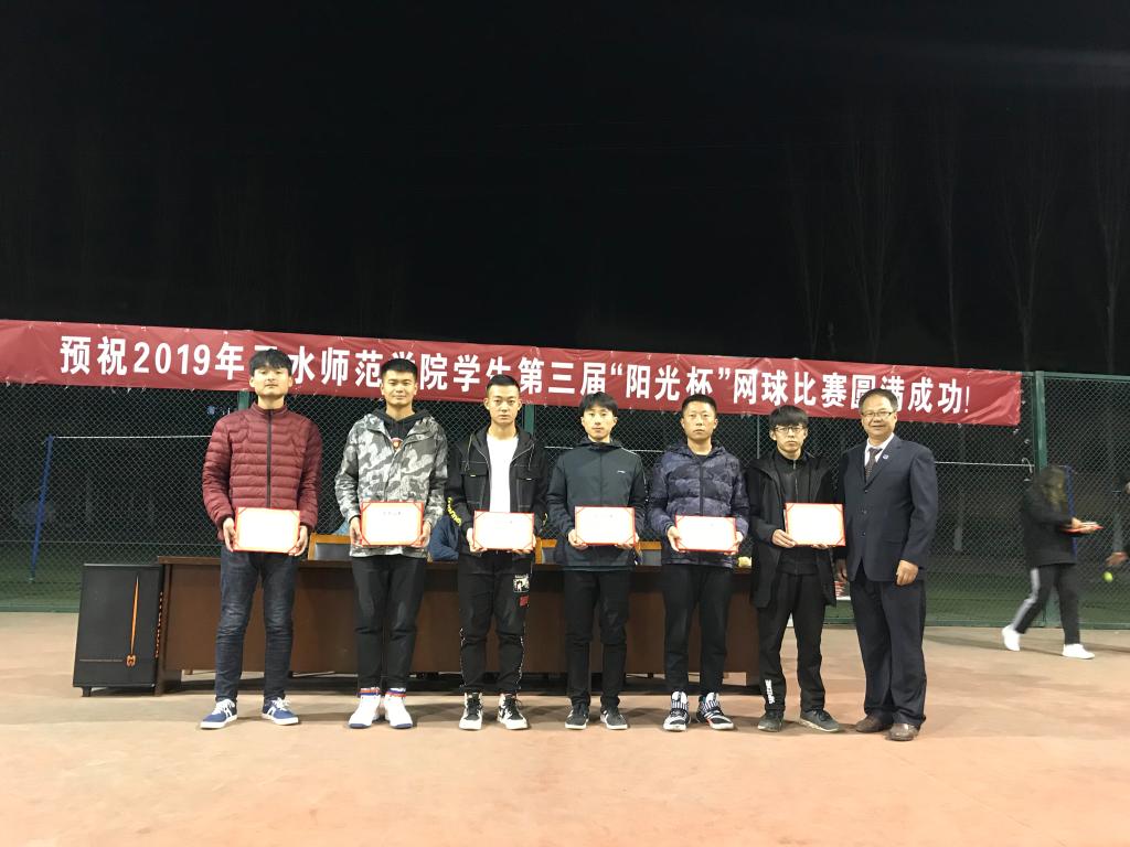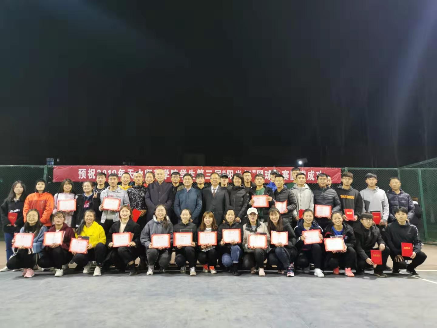 11月14日晚,350vip8888新葡的京集团大学生第三届“阳光杯”网球赛在网球场圆满落幕,本届比赛设男单、男双、女单、女双和混双五个单项,共有来自全校13个二级学院的257名运动员参加比赛。