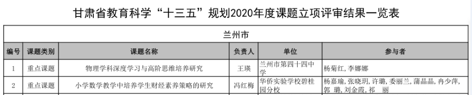 近日,甘肃省教育科学“十三五”规划2020年度课题评审结果揭晓。新葡的京官网苏兴田老师的《基于身体素养的普通高校公共体育“四位一体”教学探索与创新》和蔡中老师的《立德树人视域下高校武术“课程思政”教学改革路径探究》成功立项。