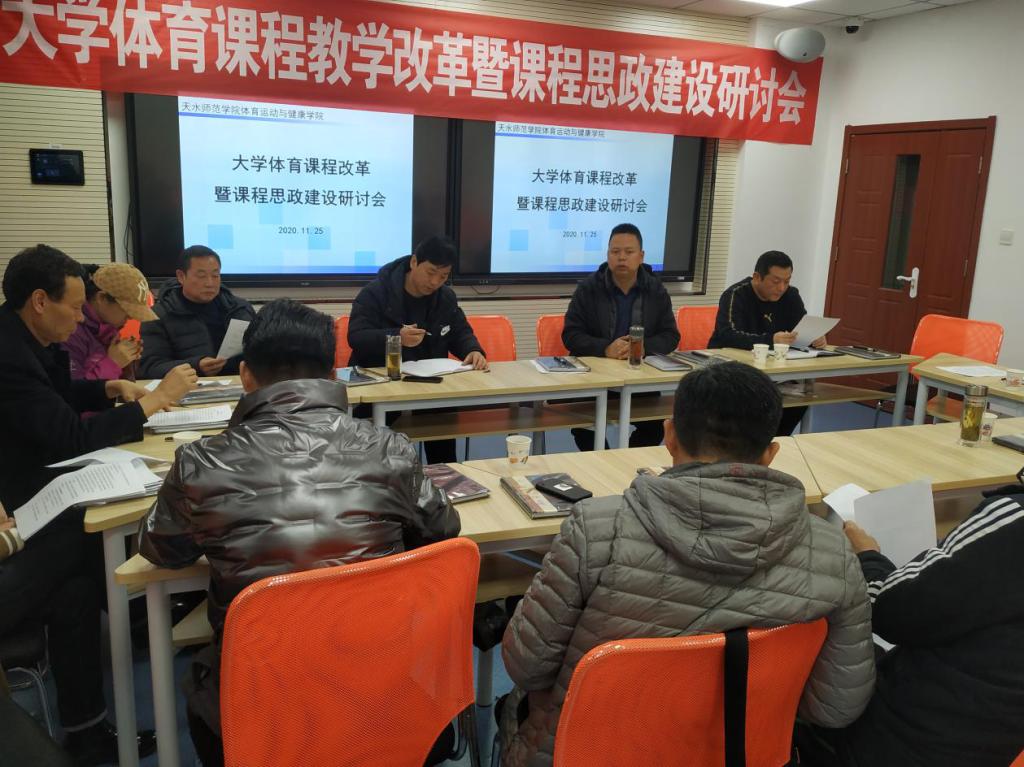 11月25日上午,350vip8888新葡的京集团召开大学体育课程改革暨课程思政建设研讨会,聚焦立德树人根本任务,全面推动大学体育课程和“课程思政”改革。学院领导、相关负责人及教师20余人参会。